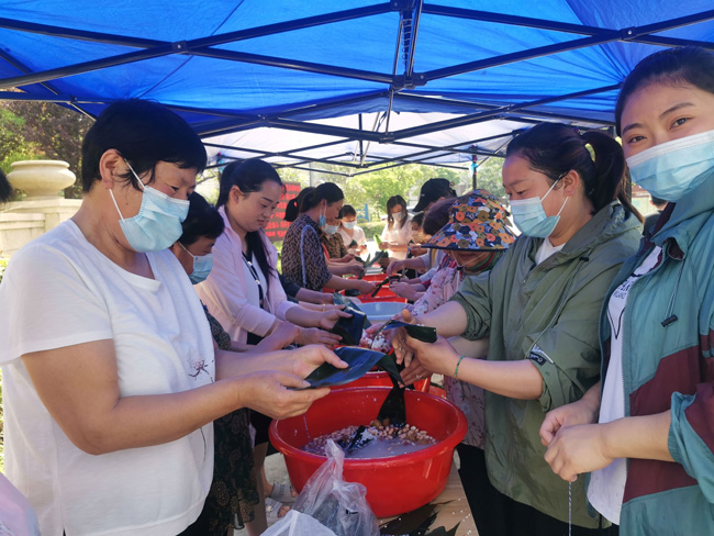 工作人員準(zhǔn)備好粽葉和泡好的糯米、蜜棗、紅豆等食材,大家各顯身手,拿粽葉、捋粽葉、做漏斗狀、填糯米、放餡料、壓緊實(shí)、封口、扎捆,巧手翻飛,不一會(huì)兒,一只只各式各樣的漂亮粽子就堆成了小山。盡管大家包粽子的水平參差不齊,但無(wú)論是技術(shù)嫻熟還是新手上路,大家都特別開心,整個(gè)活動(dòng)現(xiàn)場(chǎng)歡聲笑語(yǔ),其樂融融,好不熱鬧......