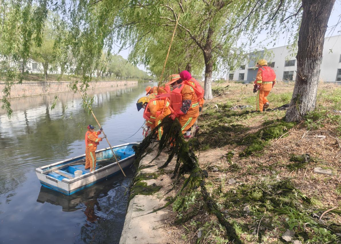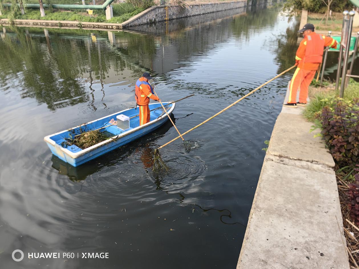 在清潔行動中,公司根據(jù)河道的實際情況,組織作業(yè)單位采取多種措施開展河道打撈作業(yè)。一是成立了專門的水草打撈小組,對水草密集的區(qū)域采用“分段切割,集中打撈”的策略,開展推進式作業(yè),截至目前,園區(qū)內各河道的第一輪水草打撈工作已經全部完成,共清理水草約35噸;二是提高了河道巡回打撈的頻率,對河面上飄落的柳絮進行了全面的拉網式打撈,確保了河道漂浮物能夠得到及時清理;三是集中開展了河道駁岸的全面排查和整治,清理各類衛(wèi)生死角50余處,有效保障了園區(qū)“水清、岸綠、河暢”的河道景觀效果。
