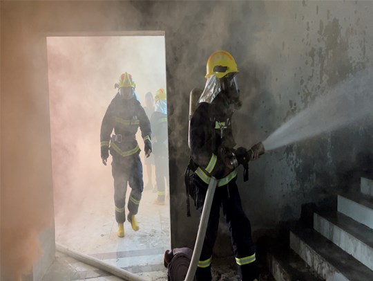 下午15點(diǎn)50分,科技物流園內(nèi)部突然起火,現(xiàn)場(chǎng)濃煙滾滾,相關(guān)工作人員立即采取自救措施,通知義務(wù)消防員有序組織人員疏散,消防官兵到場(chǎng)后,立即迅速組織對(duì)被困人員實(shí)施救援,及時(shí)堵截火勢(shì)、控制火情,經(jīng)過(guò)近30分鐘的滅火救援戰(zhàn)斗,大火被徹底撲滅,演練取得了圓滿成功。