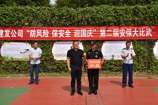 為了提升安保隊伍整體精神面貌,加強(qiáng)突發(fā)性事件快速反應(yīng)能力和聯(lián)合應(yīng)急處置能力,提高安保隊伍的安全意識和消防技能,切實保障職工的生命財產(chǎn)安全。9月23日,建發(fā)公司舉辦第二屆“防風(fēng)險保安全迎國慶”安保大比武活動。開發(fā)公司財務(wù)總監(jiān)黃健、園區(qū)消防大隊大隊長石峰、建發(fā)公司副總經(jīng)理倪松出席活動并講話。
