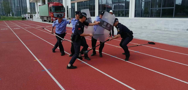 近日,為了確保學(xué)校師生的安全,建發(fā)公司物業(yè)管理部組織學(xué)校項(xiàng)目安保人員開展防暴培訓(xùn)及應(yīng)急演練。