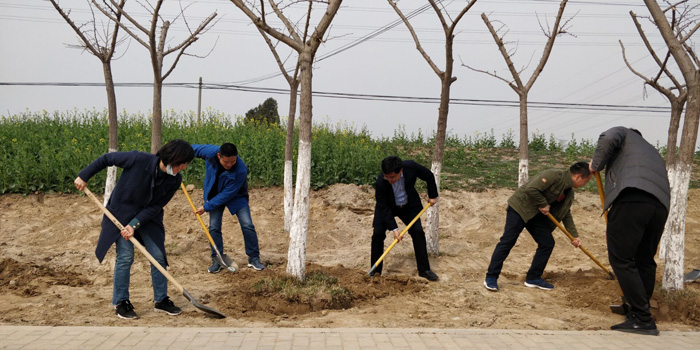 植樹現(xiàn)場,熱鬧非凡。公司員工分工協(xié)作,扛苗立苗,揮鍬鏟土,扶苗踏實,挖坑、栽樹、蓋土、澆水等各環(huán)節(jié)都精心對待,栽得認真,干得賣力,整個植樹活動現(xiàn)場一片熱火朝天的勞動景象。