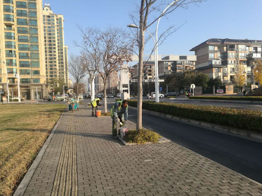 止目前,公司已完成青海湖西路、紅海大道、蘇州公園、玄武湖西路等重點(diǎn)路段的施肥、裹干、涂白等工作,預(yù)計(jì)月底完成。