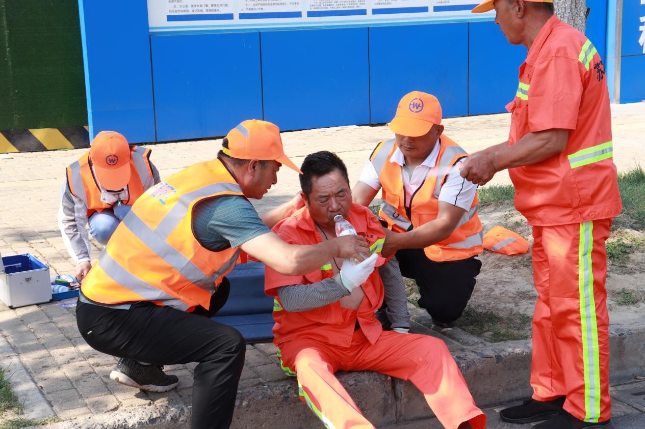 高溫防暑是城市維護作業(yè)的一堂必修課,為做好高溫天氣安全防范工作,有效提升一線作業(yè)人員應急處置和自救互救能力,營造“人人講安全、個個會應急”的安全氛圍,6月14日下午,建發(fā)公司組織開展城市維護項目高溫中暑應急演練,所有城市維護作業(yè)單位參與演練。